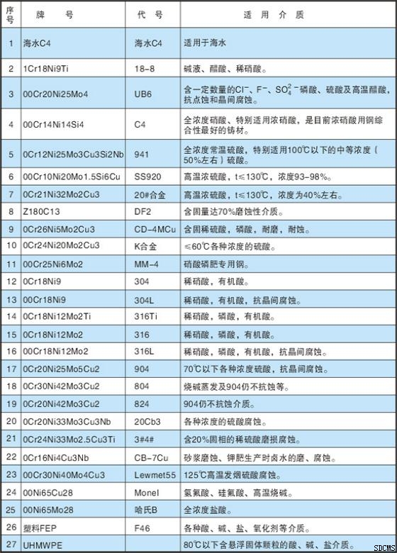 对于很多技术人员和采购人员来说选择合适的泵是生产最重要的一个环节,选型中最重要的莫过于材质的选择,一旦选错材质就会造成重大的损失,影响生产与计划。致力于泵行业二十多年,有着深厚的技术基础。下面是常见泵的选型材质