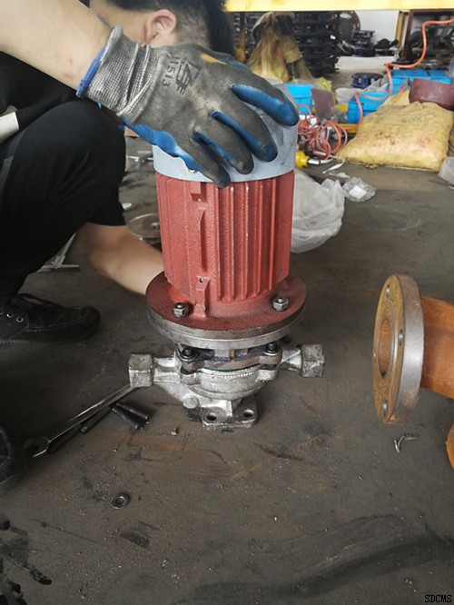 (2)、泵的进出口径相同,且位于一中心线上,可以直接安装在管道上,简单方便;